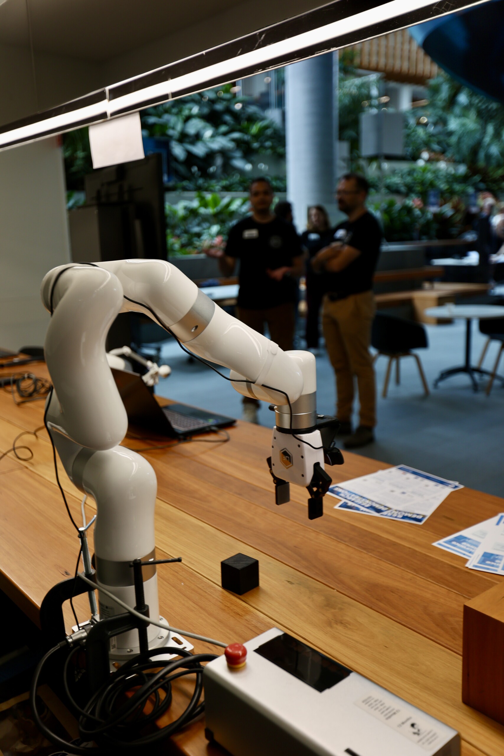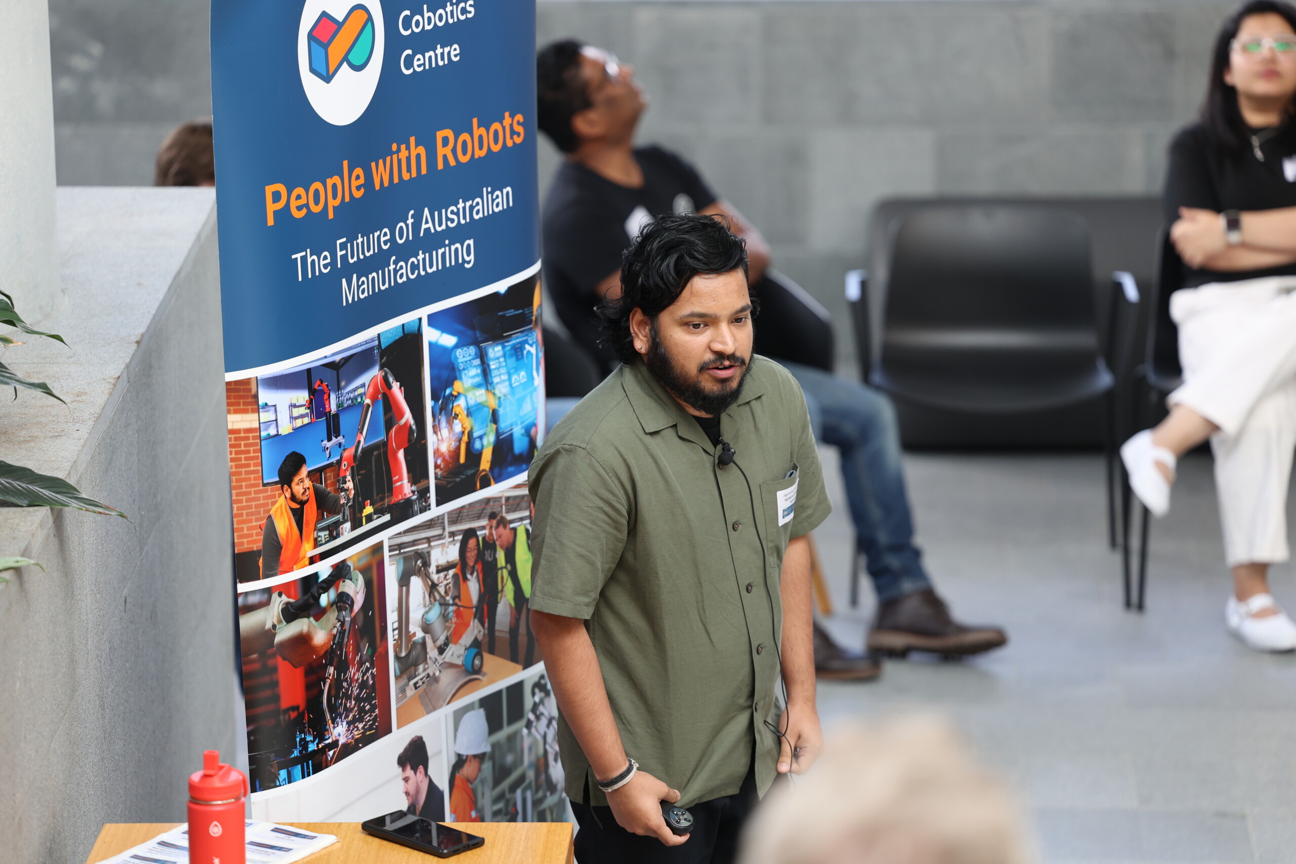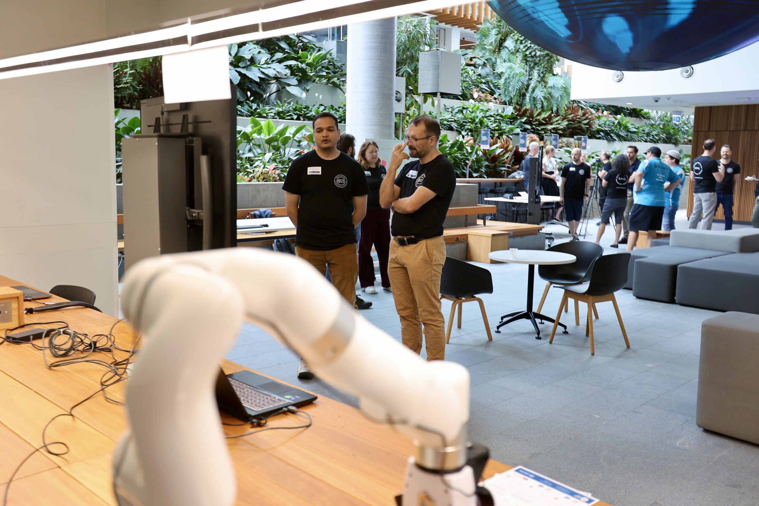 The mini-expo was a highlight for many participants, offering hands-on experiences with cobotic technologies. Live research demonstrations and stands from exhibitors including DCISIV Technolgogies, Queensland XR Hub, ARM Hub AI Adopt Centre, the Queensland Government’s Department of Natural Resources and Mines, Manufacturing and Regional and Rural Development showcased the potential of these innovations to enhance productivity, improve workplace safety, and support the competitiveness of Australian manufacturers.